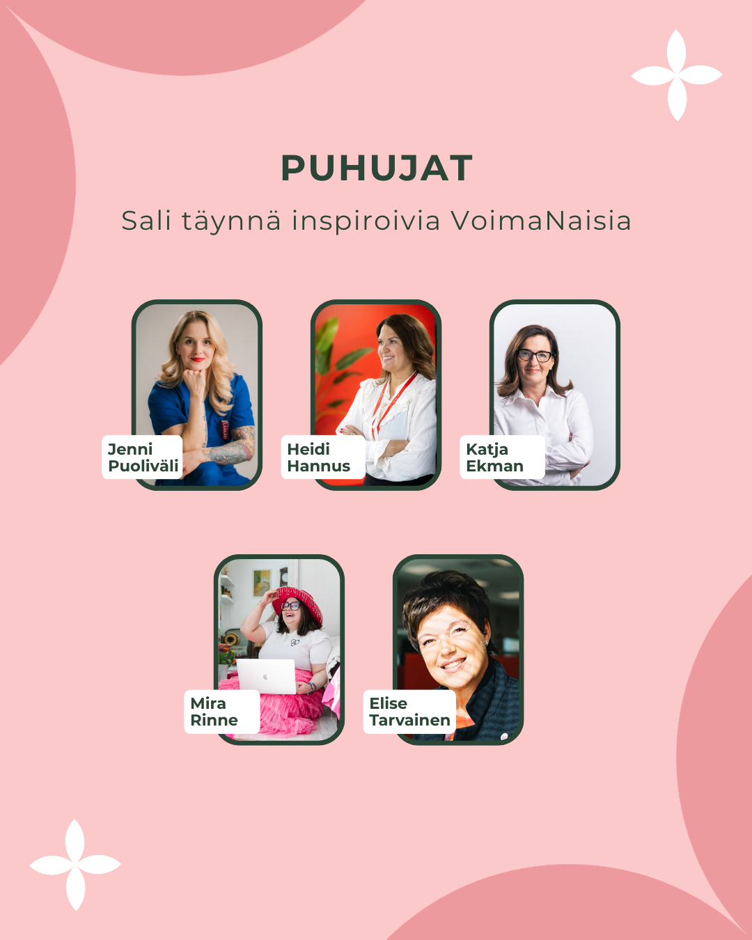 VoimaNaiset on viihdyttävä aamupäivän seminaari, jossa pääset voimaantumaan, verkostoitumaan ja vaikuttamaan yhdessä upeiden naisten kanssa!