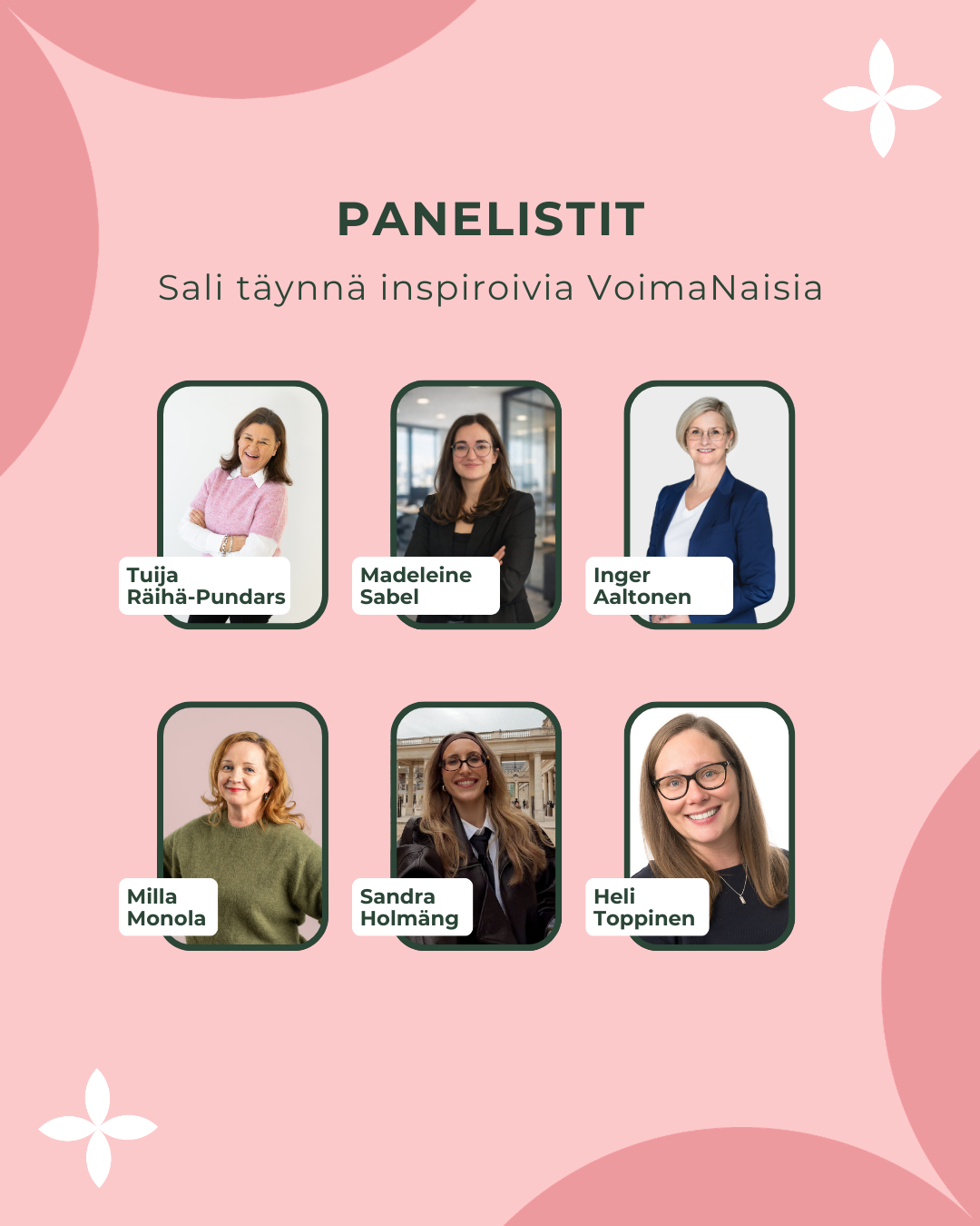 Paneelikeskustelussa kuulet aitoja tarinoita (työ)elämästä ja saat arvokkaita vinkkejä siihen miten menestyä naisena ja vapauttaa oma potentiaali.